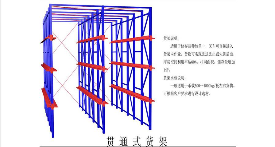 1、貨物存儲通道亦為叉車儲運通道,是存儲密度較高的一種形式貨架